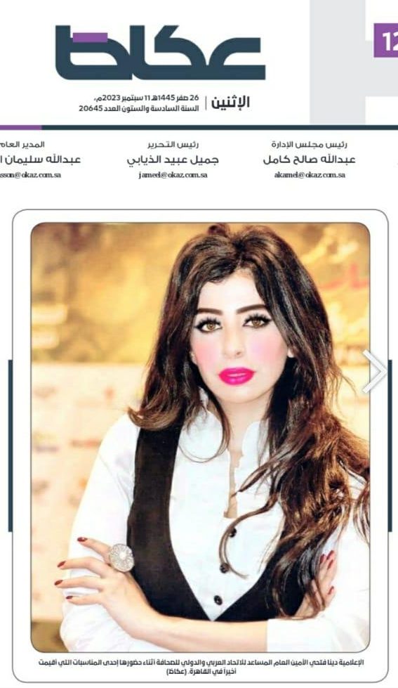 وفق صحيفة عكاظ السعودية .. تم تنصيب الإعلامية دينا ثروت بمنصب الأمين العام المساعد للإتحاد العربي والدولي للصحافة