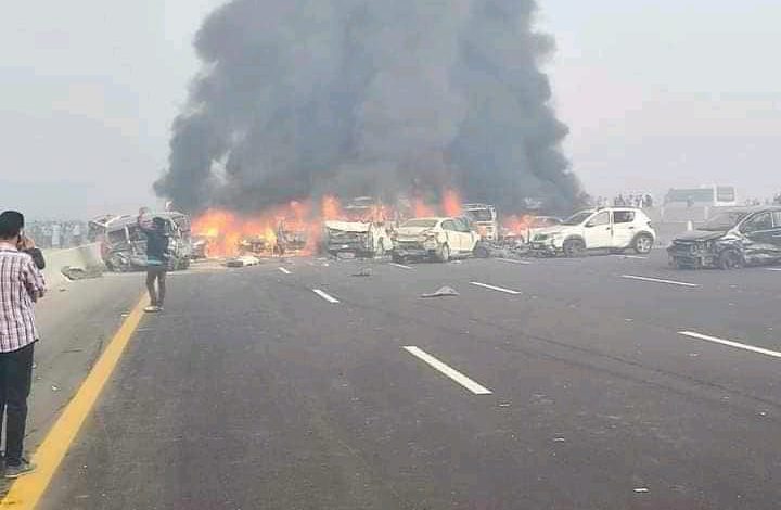 وأشارت مناظرة الجثث أن عدد كبير منها متفحم، نظر لاشتعال النيران في عدد كبير من السيارات بالحادث.