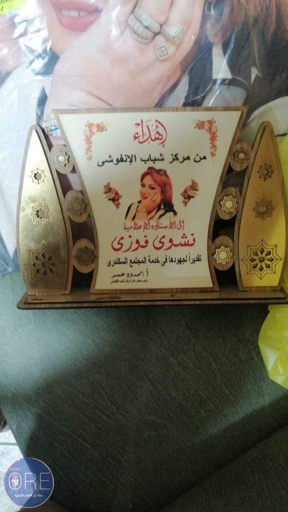 تكريم الاعلامية الدكتورة نشوى فوزي من مركز شباب الانفوشي تقديرا لمجهودها وعملها ونشاطها المتميز