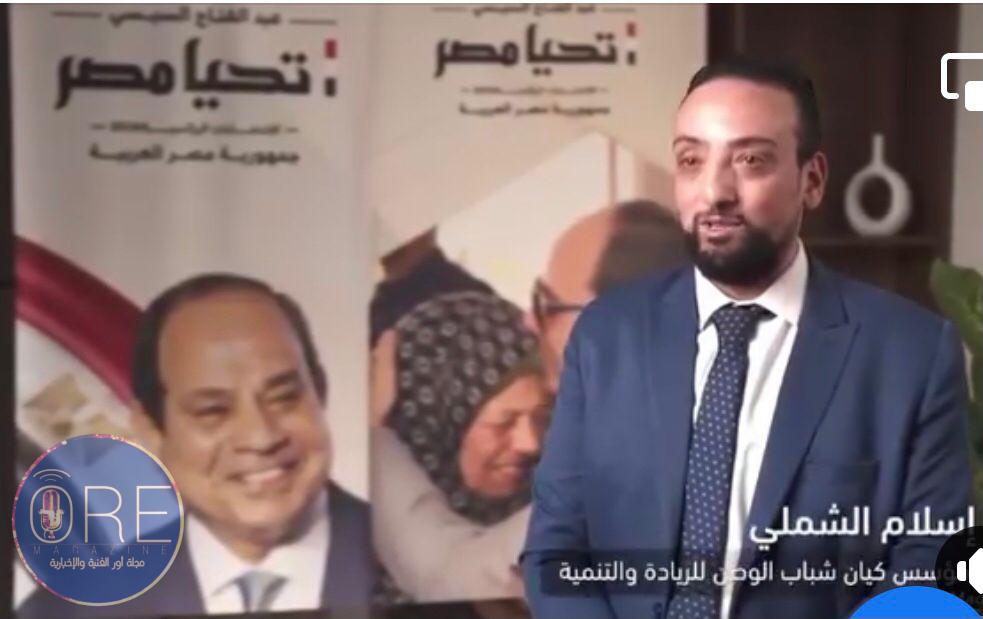 شعار رفعه كيان شباب الوطن للريادة والتنمية بناء على الدعوة الموجهة لرئيس الكيان م/إسلام الشاملى للحضور والمشاركة فى لقاء مع الكيانات الشبابية الداعمة للحملة الانتخابية والاستحقاق الرئاسى للرئيس عبد الفتاح السيسي