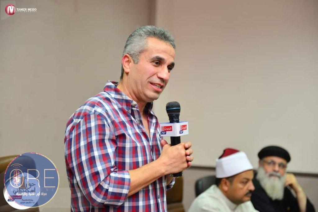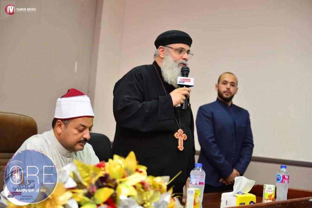 شارك العميد محمد سمير على المنصة الأب باسيليوس فؤاد كاهن كنيسة السيدة العذراء مريم بالعصافرة بالإسكندرية .. والدكتور أحمد رشاد عضو بيت العائلة المصرية وممثل الأزهر الشريف بالإسكندرية