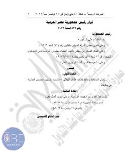 كما نشرت الجريدة الرسمية قرارًا للرئيس عبد الفتاح السيسى يحمل رقم 537 لسنة 2023 بعزل أحمد شكرى معوض محمد، المستشار المساعد (ب) بمجلس الدولة من وظيفته؛ بناء على الحكم الصادر من مجلس الدولة فى الدعوى التأديبية رقم 6 لسنة 69 ق تأديب بجلسة 30-5-2023، وعلى ما عرضه وزير العدل.