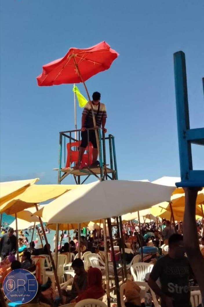 كما تواجد عمال الإنقاذ بالشواطئ والمسعفين وعمال الأبراج وكذلك التشديد علي المستأجرين بعدم السماح بنزول البدالات الي مياه البحر دون ارتداء الرواد سترة النجاة.