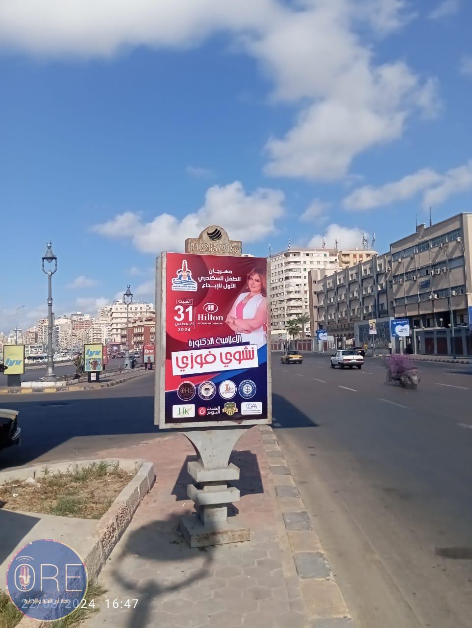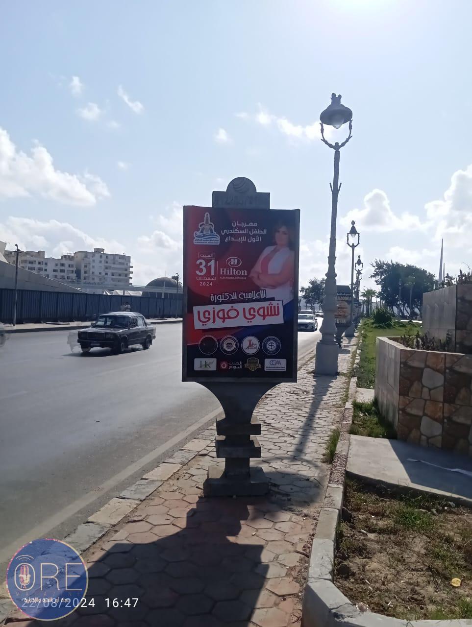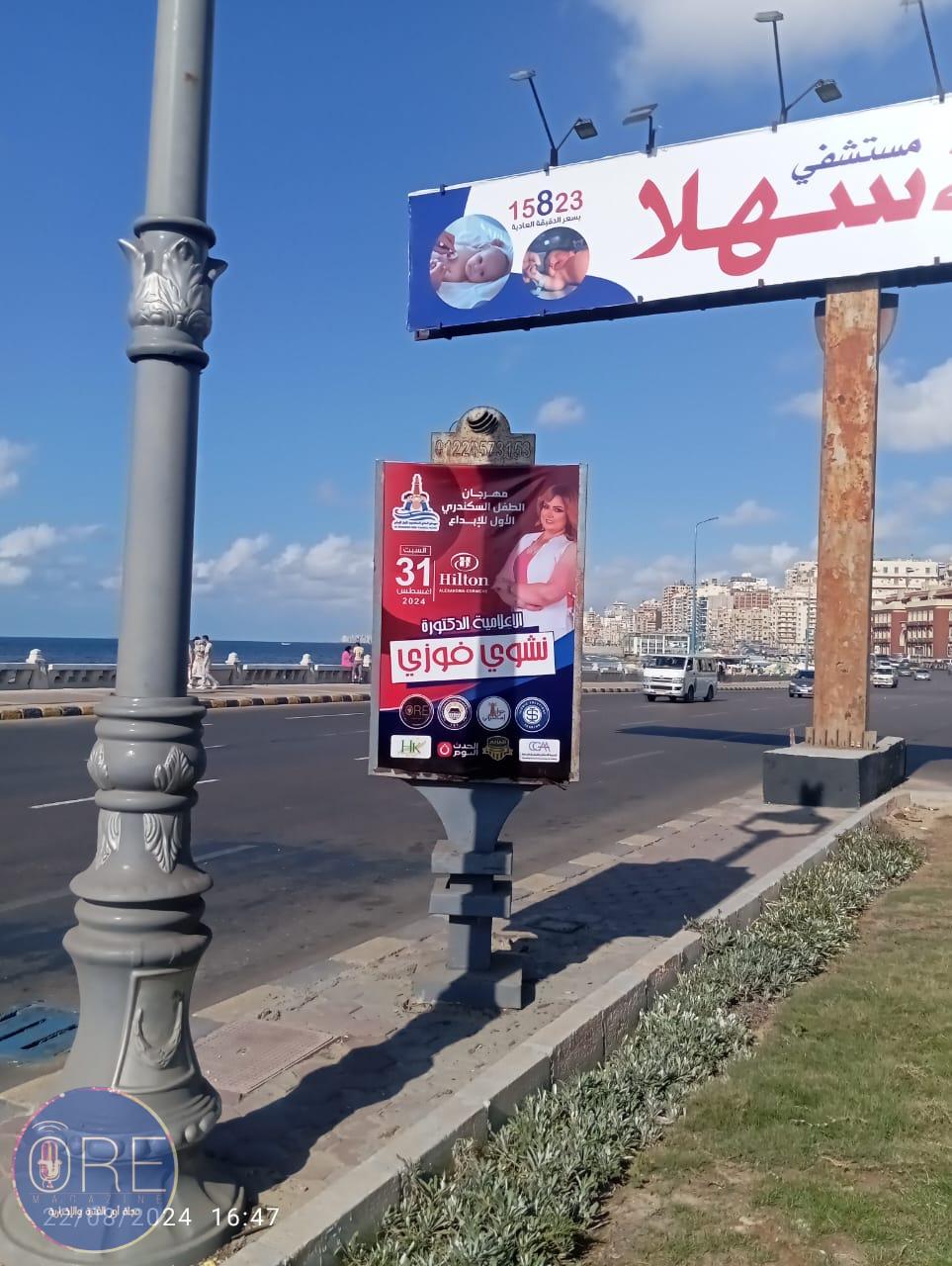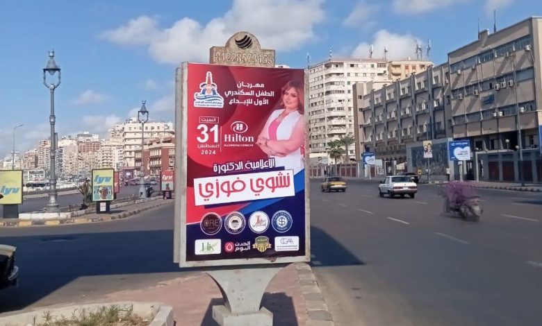 وزينت شوارع عروس البحر خاصة كورنيش الإسكندرية بلافتات المهرجان إستعداداً لاقامته .. برئاسة الإعلامية الدكتورة نشوى فوزي والدكتورة شيماء عراقي