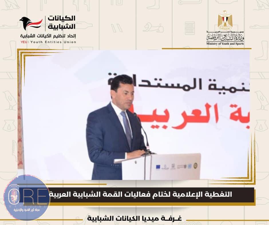 بتشريف الدكتور/ أشرف صبحى – وزير الشباب والرياضه ختام القمه الشبابية العربية والتى ينظمها الكيان الشبابى” اتحاد شباب تحيا مصر ” بالتعاون مع جامعة الدول العربية ضمن فاعليات الأسبوع العربى للتنمية المستدامة