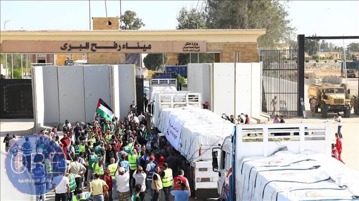 شاحنات المساعدات تحمل العديد من المواد الغذائية والخيام وجميع المستلزمات ومقومات الحياة الأساسية لقطاع غزة