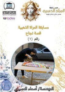 أسماء المسيري فتاة تخرجت في كلية الفنون الجميلة قسم تصوير جداري بجامعة الإسكندرية، وتبلغ من العمر 33 عاما، وهي أم لطفلين الأول في عمر 9 سنوات والثاني 7 سنوات، وبدأت تتجه في عمل لوحات الرسم ولوحات الموزاييك، وكانت ترغب في افتتاح مكان للتخصص في “الهاند ميد واللوحات”، ثم اتجهت مع سوق العمل إلى تصنيع المرايات.