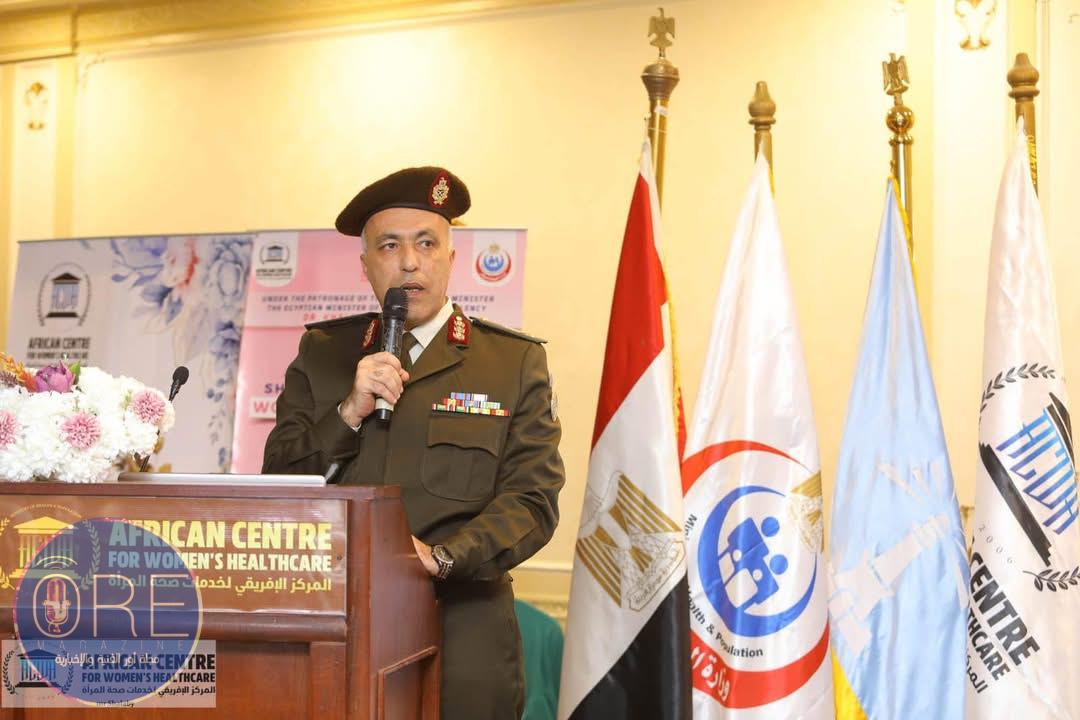 اللواء طبيب هشام شاهين – الذي تناول أوجه التعاون المشترك بين المركز الأفريقي لخدمات صحة المرأة والمستشفى العسكري، مشيرًا إلى الجهود المشتركة في تقديم خدمات طبية متخصصة ودعم البحث العلمي في مجالات صحة المرأة.