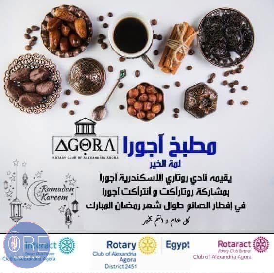 للعام الخامس علي التوالي، مطبخ آجورا “لمة الخير 5” يقيمه نادي روتاري الاسكندرية آجورا برئاسة (صفاء حبشي) بمشاركة روتارأكت و أنترأكت آجورا في إفطار الصائم طوال شهر رمضان المبارك إن شاء الله، و يهدف المشروع إلي إقامة وجبات ساخنة لإفطار الصائمين و ذلك يومياً و يتم توزيعها حسب جدول مُعد مسبقاً بين أعضاء النادي.