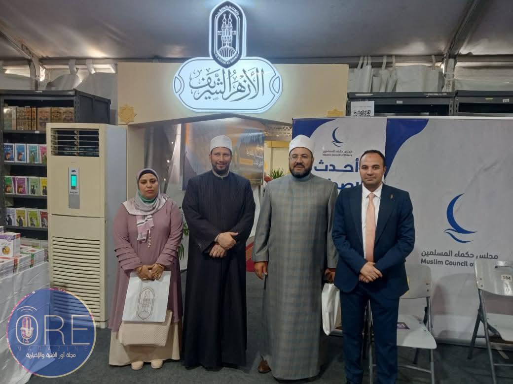 رئيس منطقة الإسكندرية الأزهرية يتفاعل مع الأطفال والجمهور خلال زيارته لجناح الأزهر الشريف بمعرض الكتاب