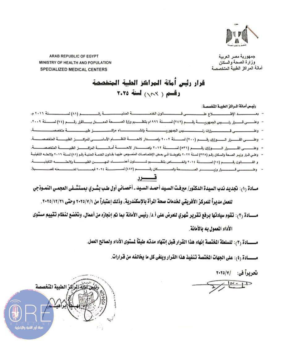 تهنئة خاصة الى الدكتورة ميرفت السيد لتجديد الثقة لها مديراً للمركز الإفريقي بالإسكندرية