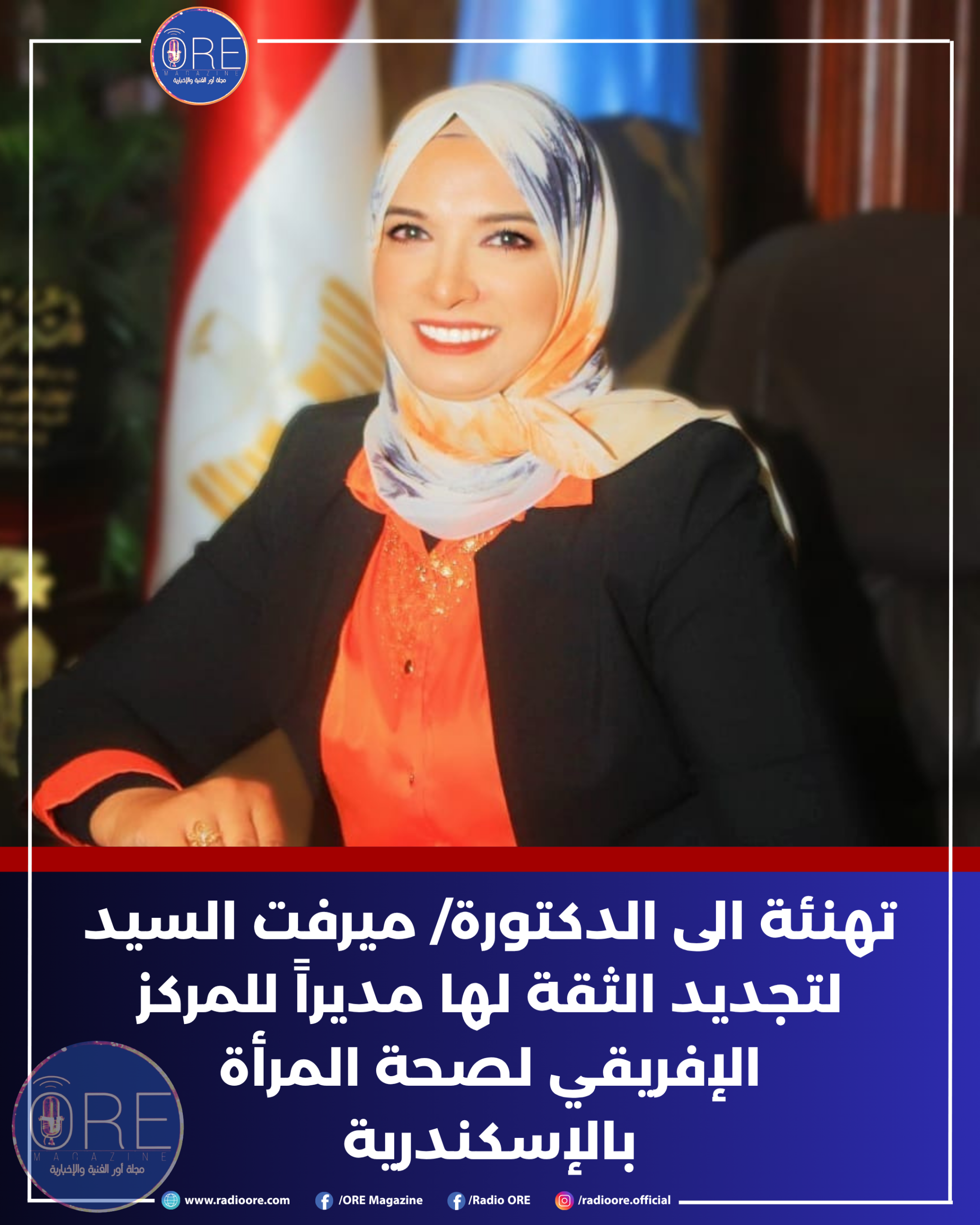 يتقدم مجلس إدارة جريدة راديو أور برئاسة الإعلامية الدكتورة نشوى فوزي رئيس مجلس الإدارة والدكتور مايكل صفوت – نائب رئيس مجلس الإدارة ورؤساء الأقسام والمحررين بخالص التهنئة الى الدكتورة / ميرفت السيد – بتجديد الثقة لها مديراً للمركز الإفريقي لخدمات صحة المرأة بالإسكندرية .. متمنيين لسيادتها دوام التوفيق والسداد