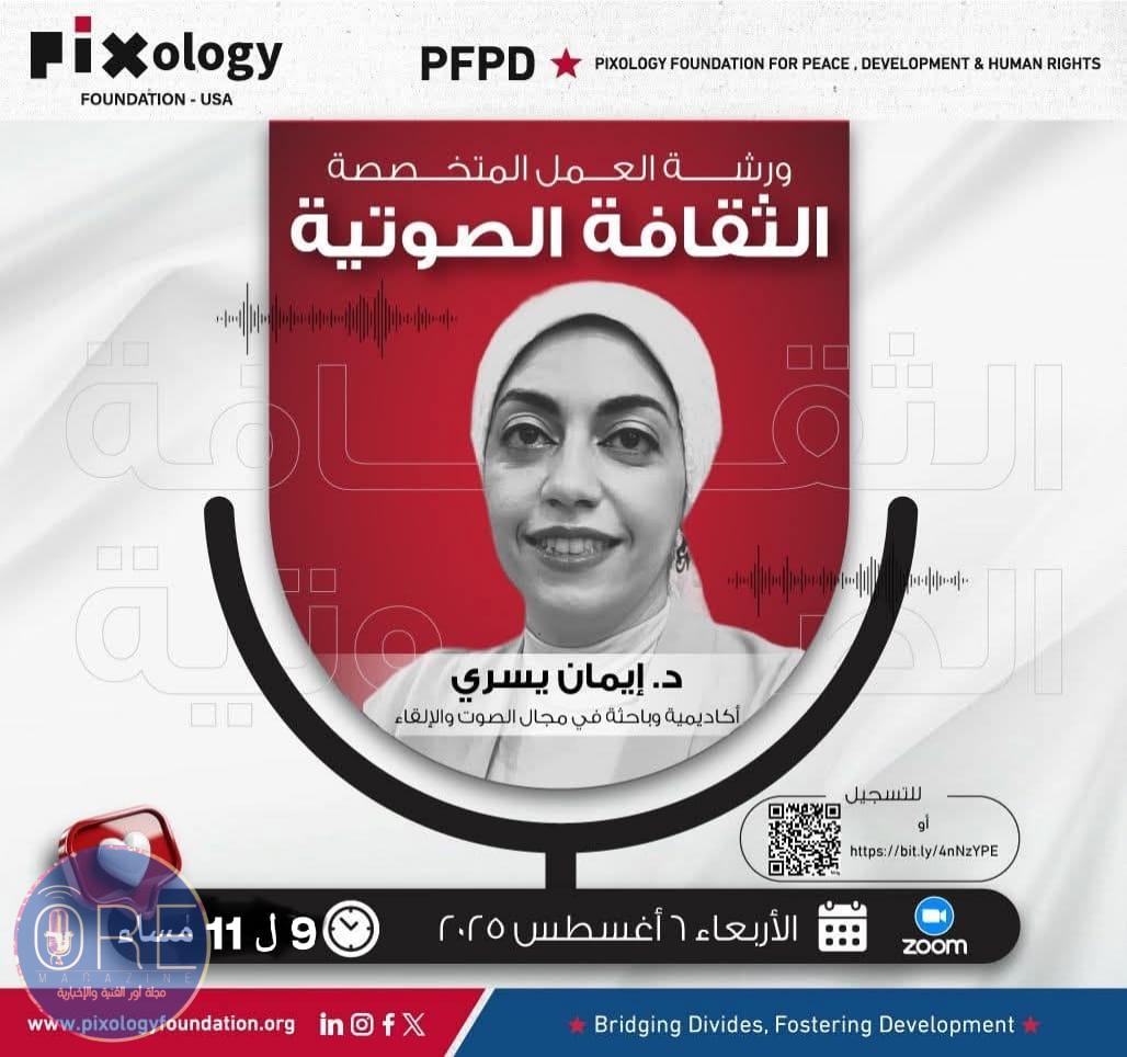 أعلنت مؤسسة بيكسولوجي للسلام والتنمية وحقوق الإنسان، ضمن برنامج SkillBridge، الذي يهدف إلى تمكين الأفراد وبناء قدراتهم في المجالات التي تُحدث فارقًا حقيقيًا في حياتهم، عن ورشة الثقافة الصوتية وأهمية التدريب الصوتي.