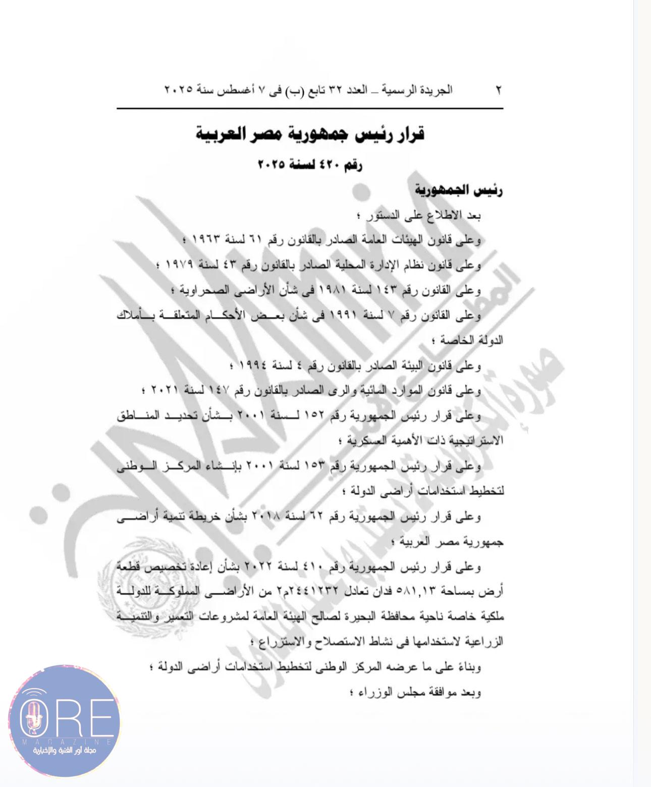 أصدر السيد الرئيس عبد الفتاح السيسي قرارا جمهوريا بتخصيص قطّعه ارض بمساحة 581.13 فدان فى وادى النطرون لصالح محافظه البحيره لاقامه العديد من المشروعات القوميه مع احتفاظ القوات المسلحه المصريه بالاحتفاظ بملكيتها للمواقع العسكريه داخل المنطقه وذلك بعد صدور قرار من المركز الوطنى للتخطيط واستخدام اراضى الدوله