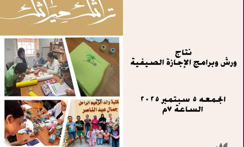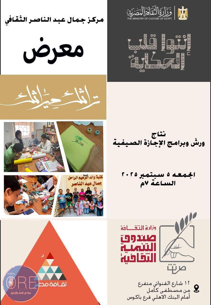 تراث وفنون وكتب… 3 فعاليات في ختام برنامج النشاط الصيفي لمركز جمال عبدالناصر