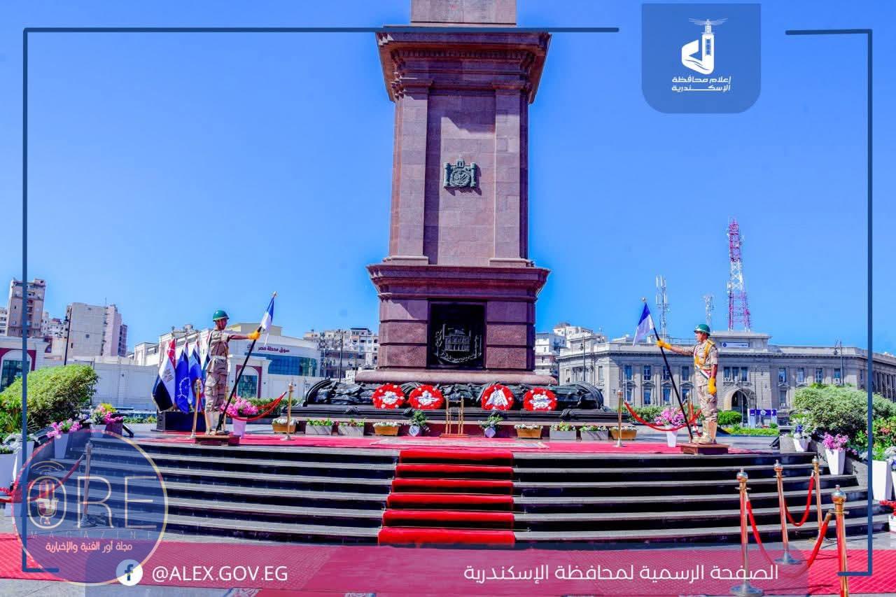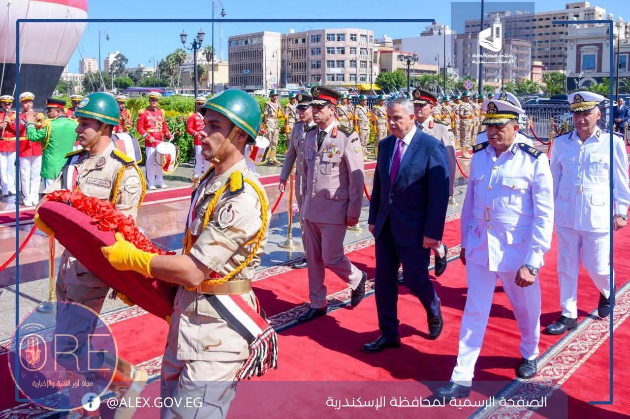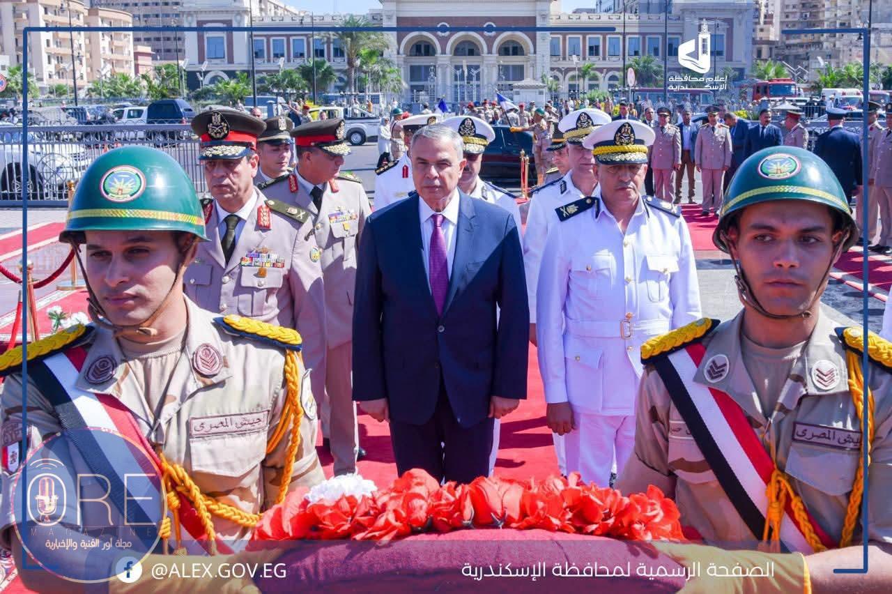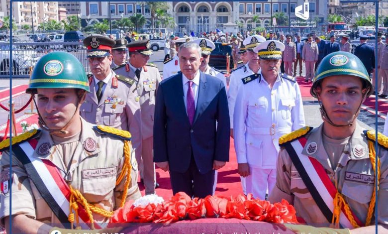 محافظ الإسكندرية على النصب التذكاري لشهداء الوطن بميدان محطة مصر بمناسبة ذكرى انتصارات أكتوبر المجيدة