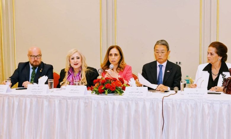 و أدارت الندوه الوزيره المهندسه ناديه عبده نائب رئيس لجنه بناء السلام و منع النزاعات و بحضور رس ماريو دي باسكوالي السكرتير الفخري للجنه.