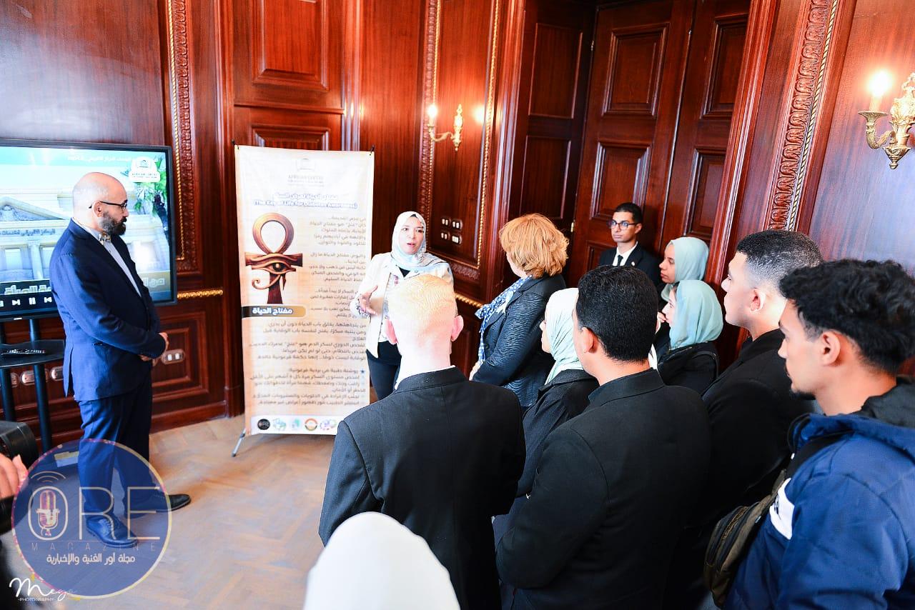 واضافت *د.ميرفت السيد* أيضا أن هذا التاريخ يتميز بإضاءة المعالم الأثرية و المبانى البارزة حول العالم باللون الازرق فهو اللون ليعكس السماء التى توجد جميع الأمم وقد تميزت الفعالية بتنسيق الديكورات المتنوعة *للأستاذة نشوى أشرف* على شكل الدائرة الزرقاء فهى الرمز الدولى للسكرى و ترمز لوحدة المجتمع العالمى للسكرى استجابة لجائحة مرض السكرى.