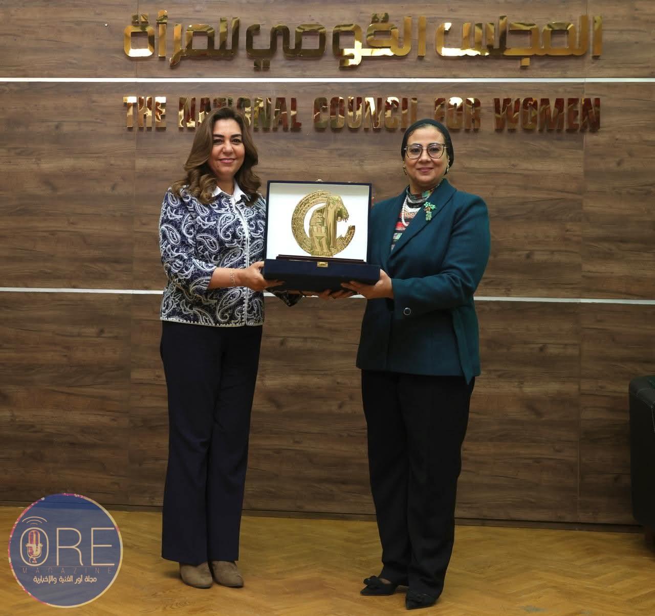 وفى نهاية اللقاء أهدت المستشارة أمل عمار درع المجلس القومي للمرأة للدكتورة منال عوض تكريماً لجهودها في دعم الشباب في قضية التغير المناخي.