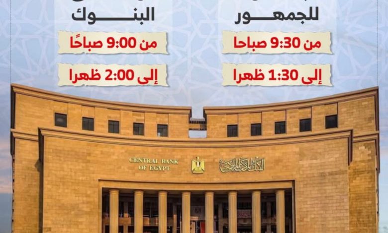 مواعيد عمل البنوك في شهر رمضان المبارك اربع ساعات يوميا … البنك المركزي المصري يعلن مواعيد عمل القطاع المصرفي خلال شهر رمضان المبارك 2026 لتيسير سير العمل وضمان تقديم الخدمات المصرفية بشكل منتظم
