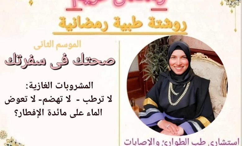 واختتمت أن المشروبات الغازية، لا ترطب – لا تهضم- لا تعوض الماء، ولكنها تجهد المعدة، ترفع السكر، تفتح باب الطوارئ على مصراعيه في رمضان.