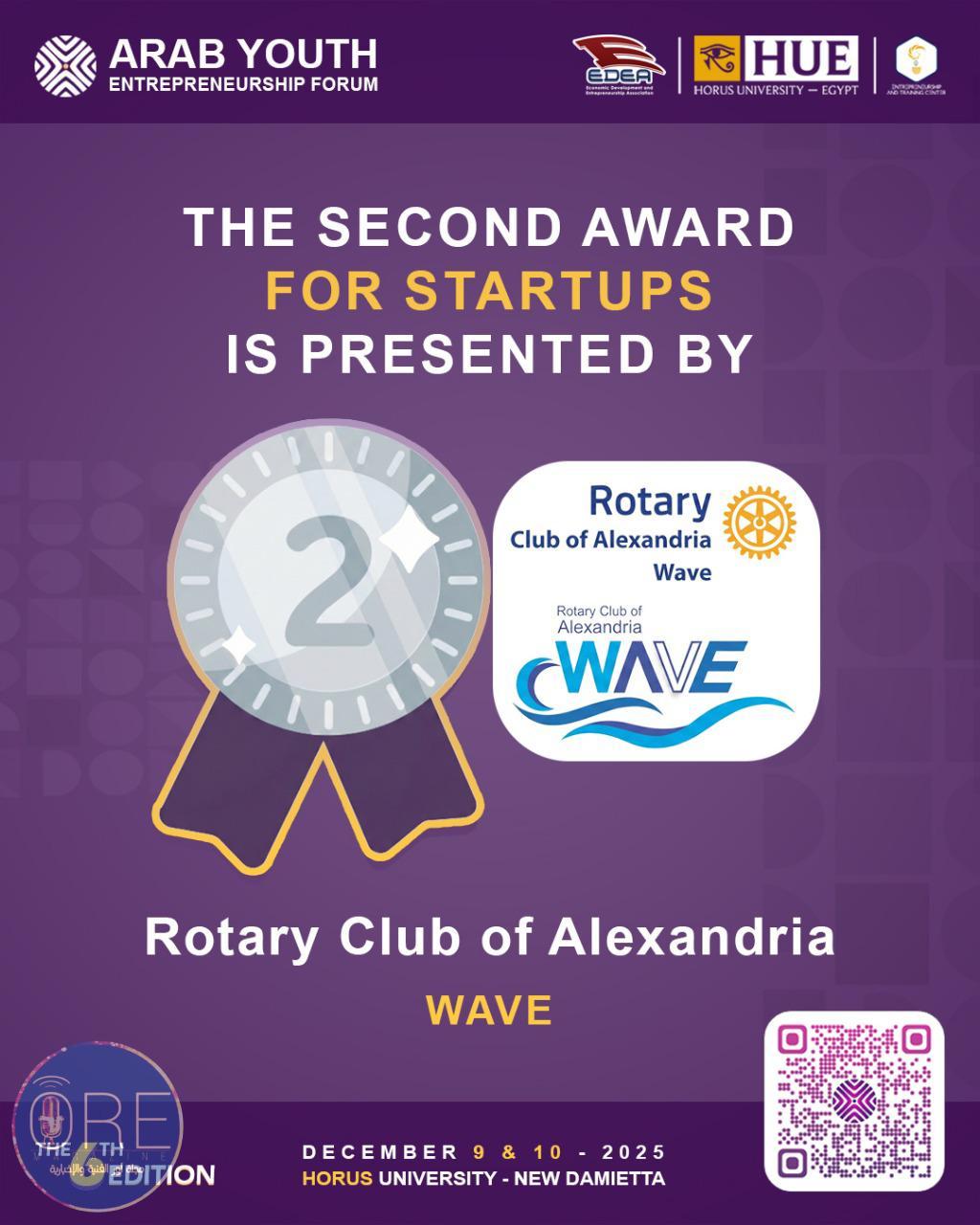 ملتقى الشباب العربى للتنميه المستدامه لنادى روتارى ويف. تحت رعاية ومشاركة من نادي روتاري اسكندرية ويف برئاسة اسامة صقر وسكرتير فخري اماني الكبير كشريك استراتيجي دائم حيث ان هذا الملتقى يعد من المشاريع المستدامة في الخدمة المهنية لنادينا وبمشاركة قوية ايضا من كلية الهندسة قسم الذكاء الاصطناعي تم إطلاق النسخة السادسة من ملتقى الشباب العربي لريادة الأعمال والذي تم عقده يومي ٩-١٠ ديسمبر ٢٠٢٥ وبالتعاون مع جامعة حورس بمدينة دمياط الجديدة