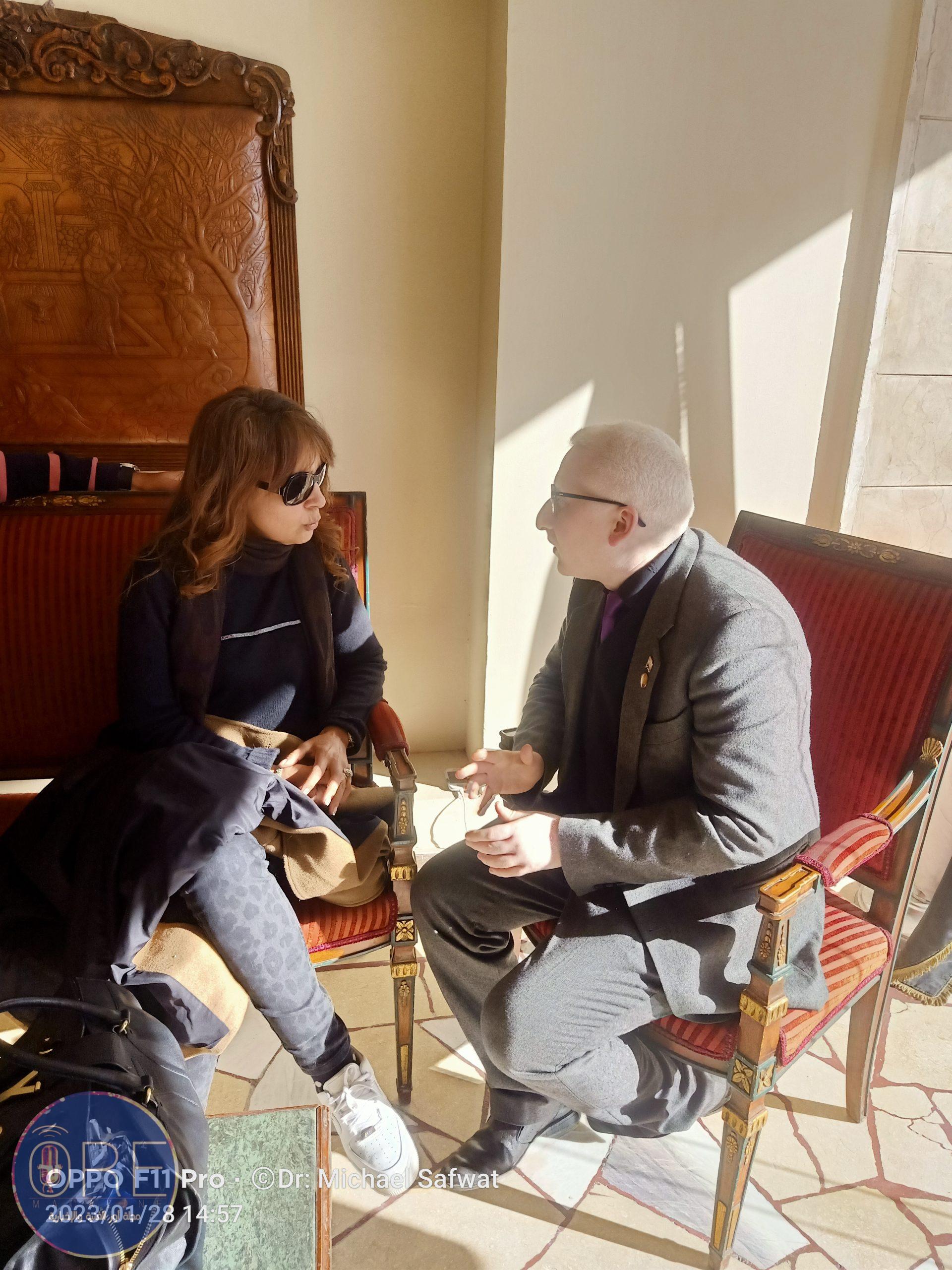 إستقبال الدكتور مايكل صفوت نائب رئيس مجلس إدارة مجموعة أور الإعلامية المطربة الكبيرة حنان بفندق سان چيوفاني بالإسكندرية