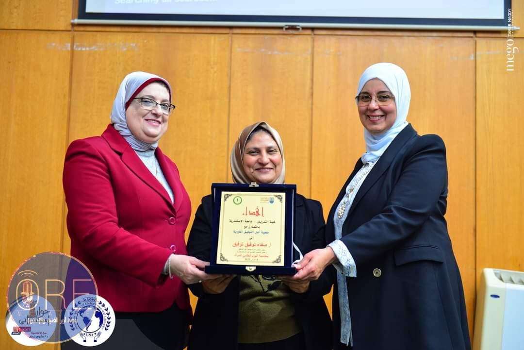 تم تكريم ا عزه عبد الفتاح علاقات عامه استاد الاسكندرية