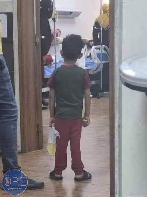 يتجول في المستشفى حاملا بيده قطعة من البسكويت وبيده الأخرى كيس الإدرار ، ينتظر دوره ليغسل كليتيه.