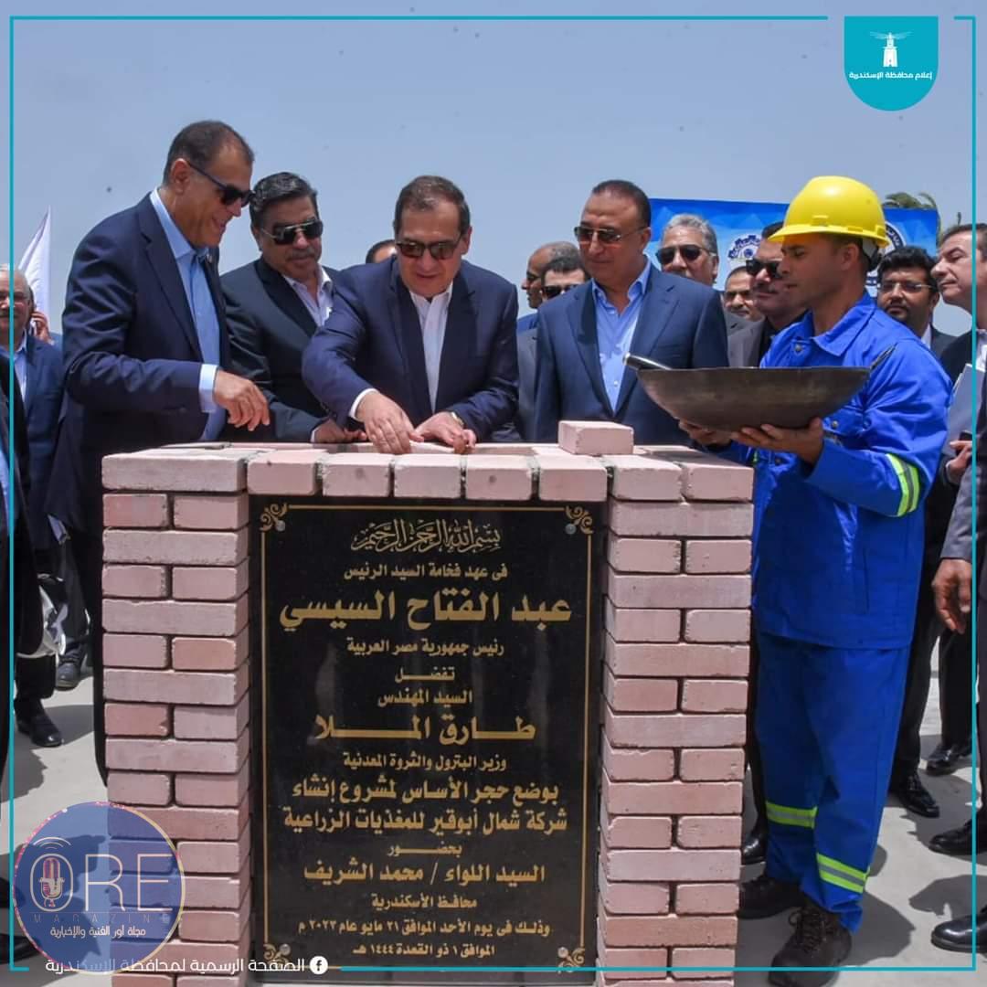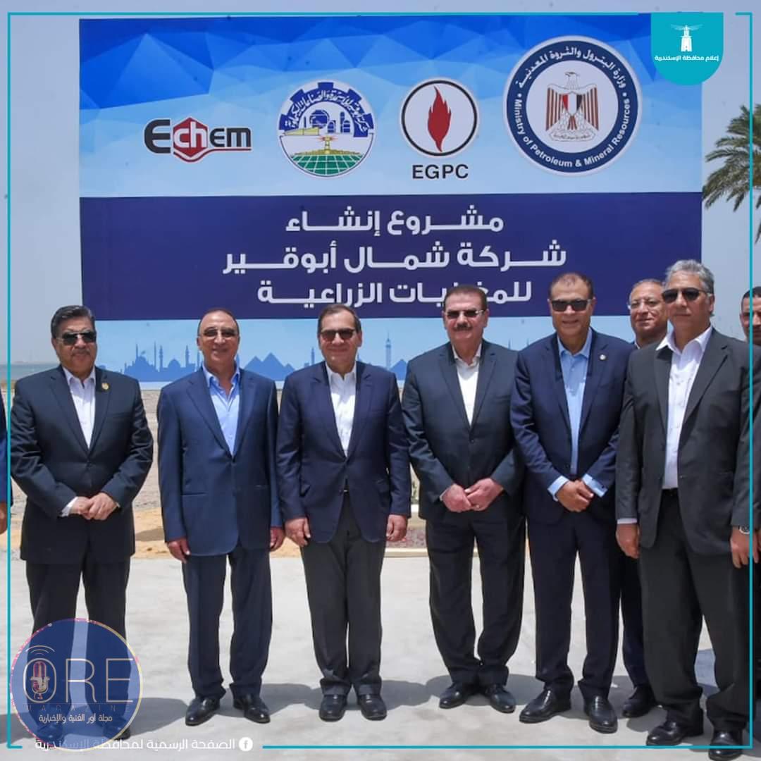 ووضع المحافظ والوزير حجر الأساس لشركة شمال أبوقير للمغذيات الزراعية (مشروع إنتاج سماد نترات الأمونيوم) والتى تقام على قطعة الأرض المملوكة للهيئة المصرية العامة للبترول والملاصقة لشركة أبوقير للأسمدة.