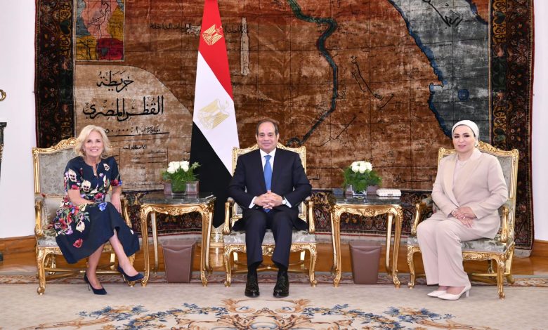 الرئيس السيسي والسيدة قرينته يستقبلان السيدة چِل بايدن قرينة رئيس الولايات المتحدة الأمريكية