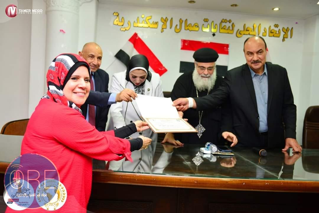 الاتحاد المحلى لنقابات عمال مصر بالإسكندرية يتلألئ بحفل عيد العمال الذى اقامته امانة المراءة بالاتحاد