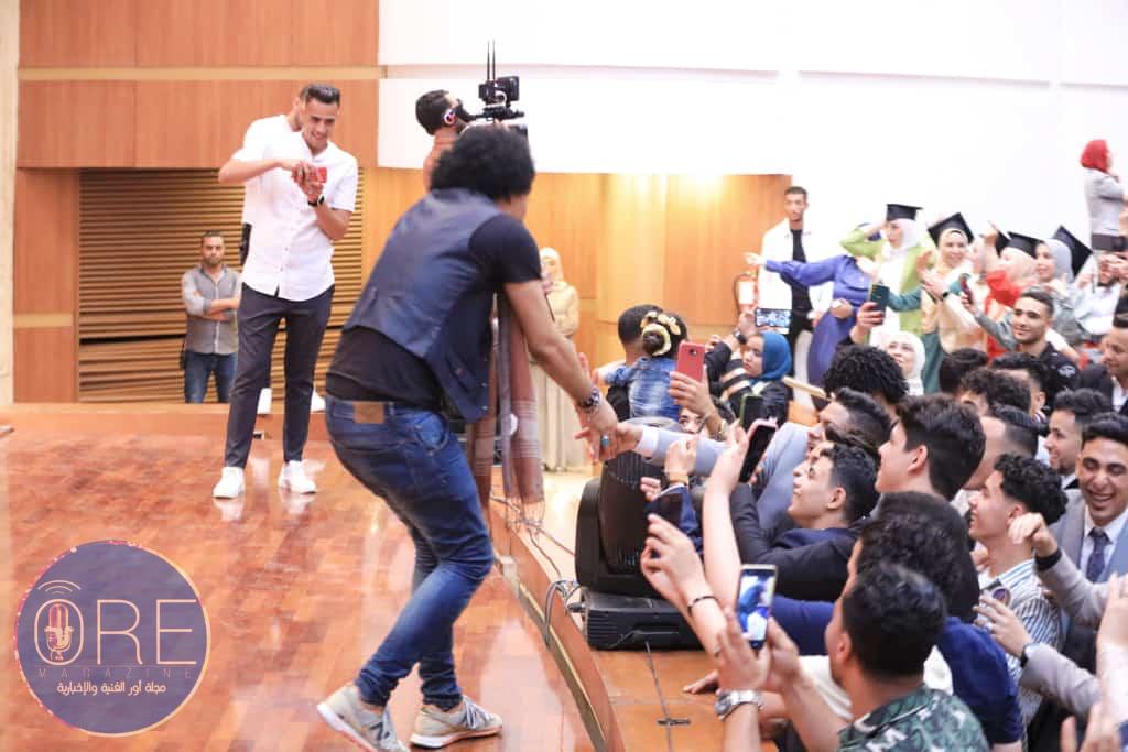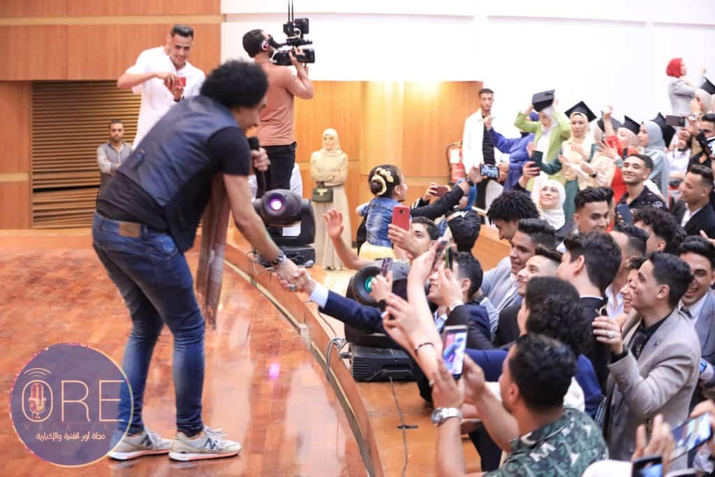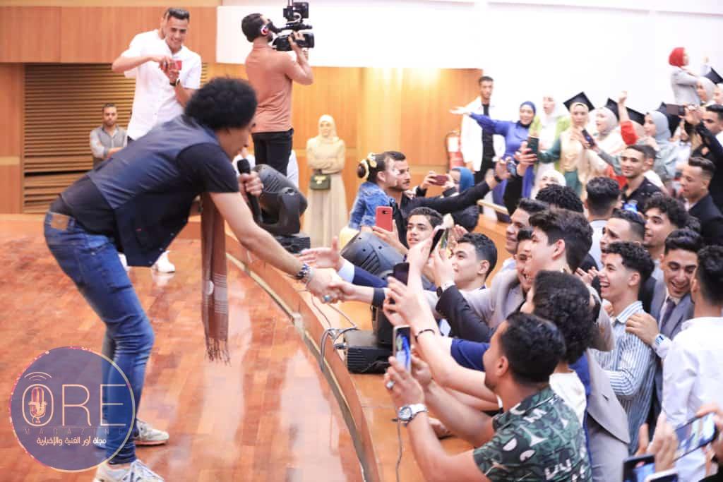 وعند انتهاء الحفلة أندفع الخريجين وأهليهم وذويهم بالتصوير مع فنان خالد منير