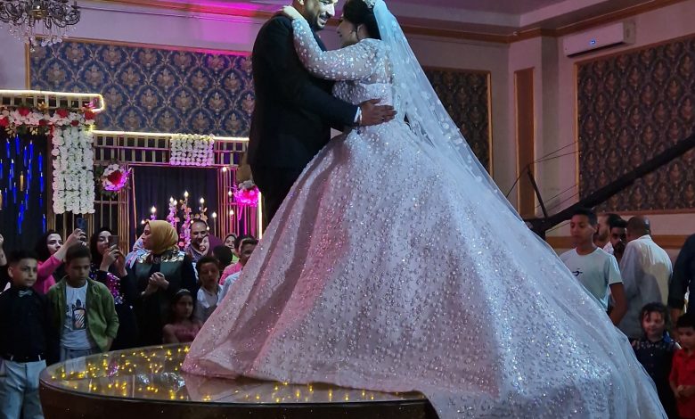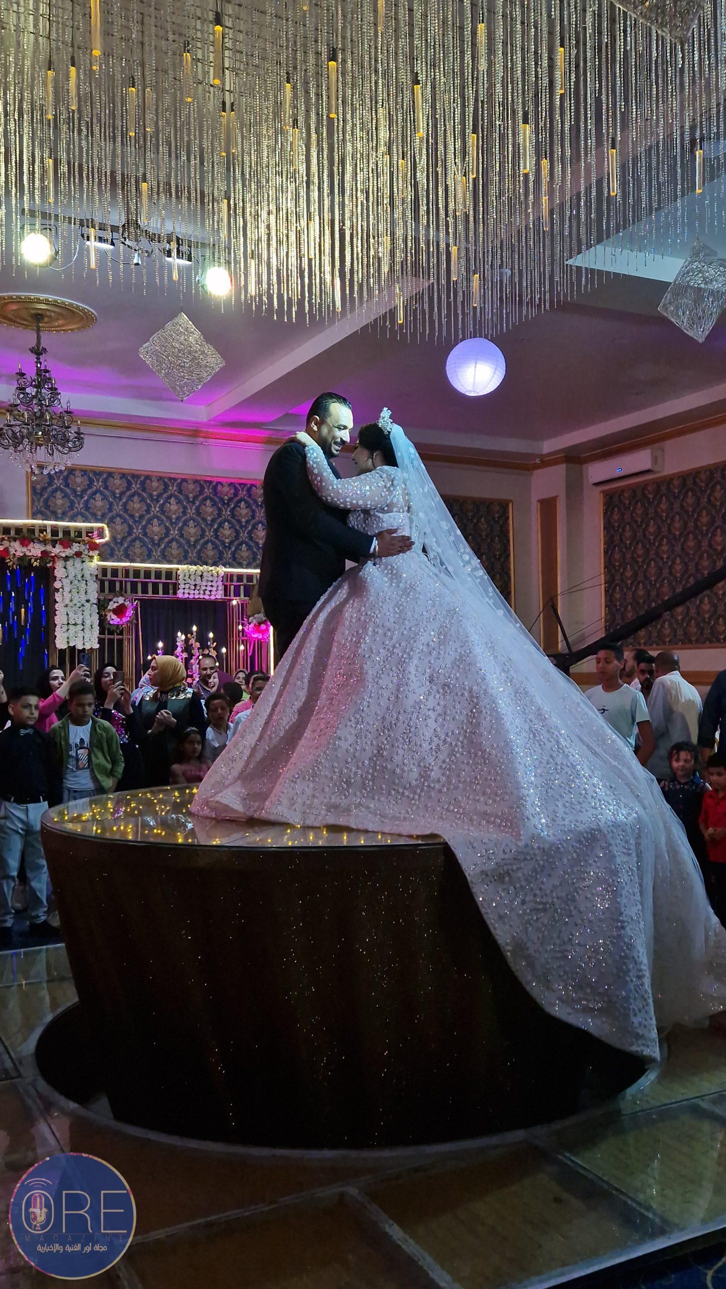 وكانت القاعه ممتلئة بالمدعوين من الأهل والأصدقاء للمشاركة في الفرح احتفالآ بالزواج السعيد