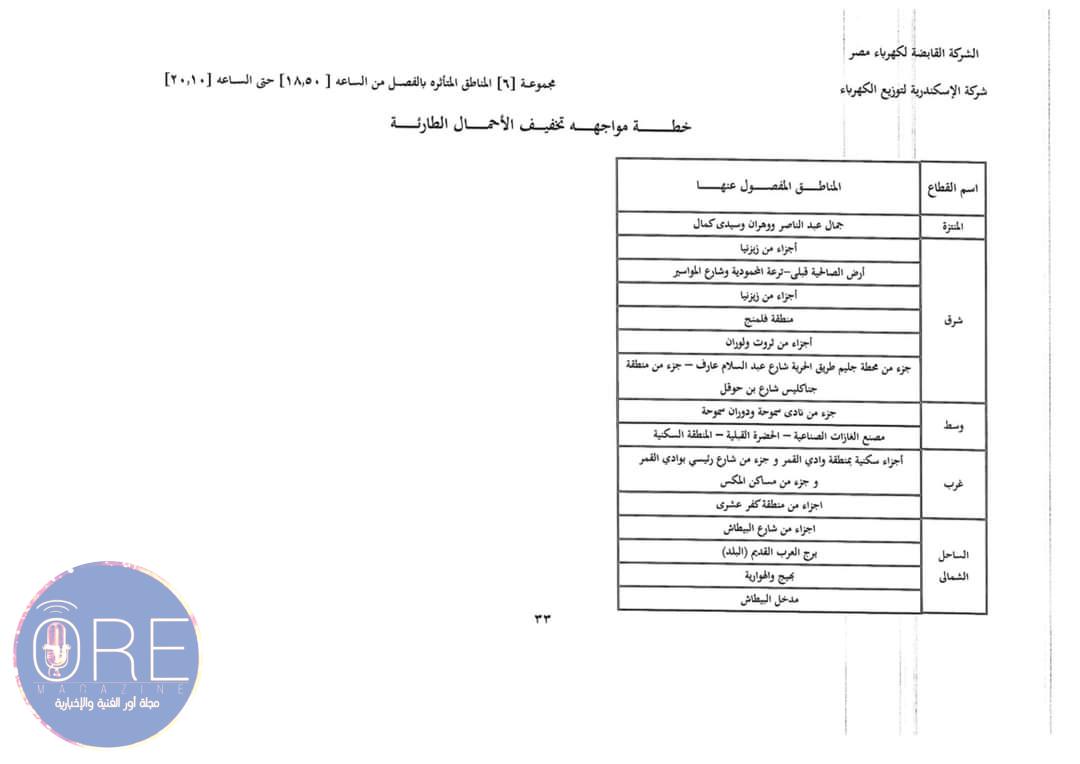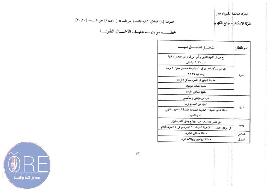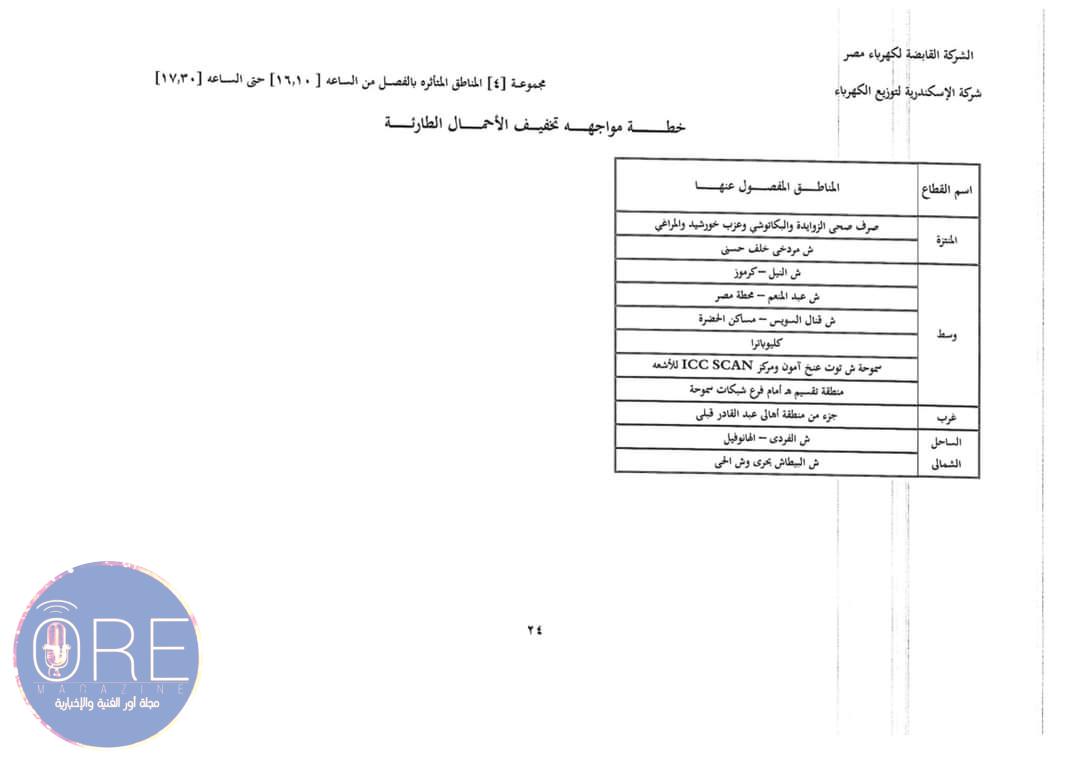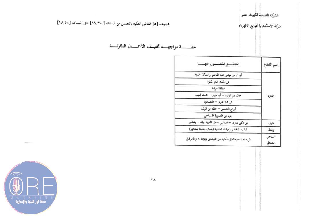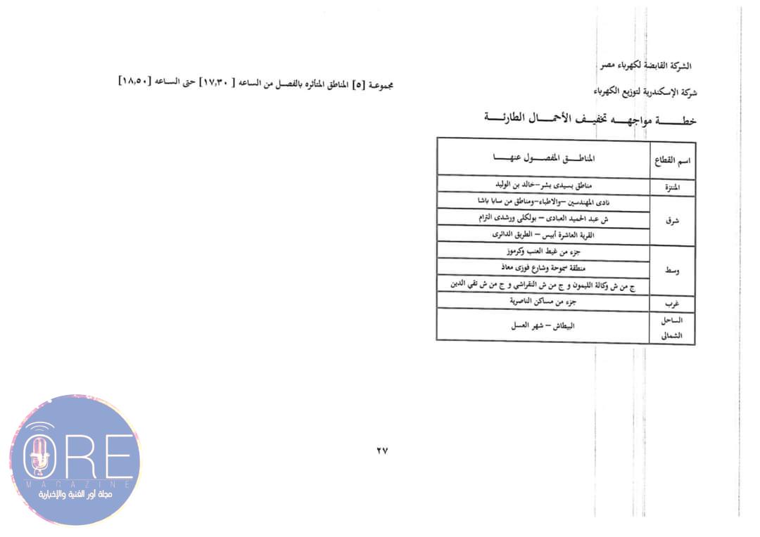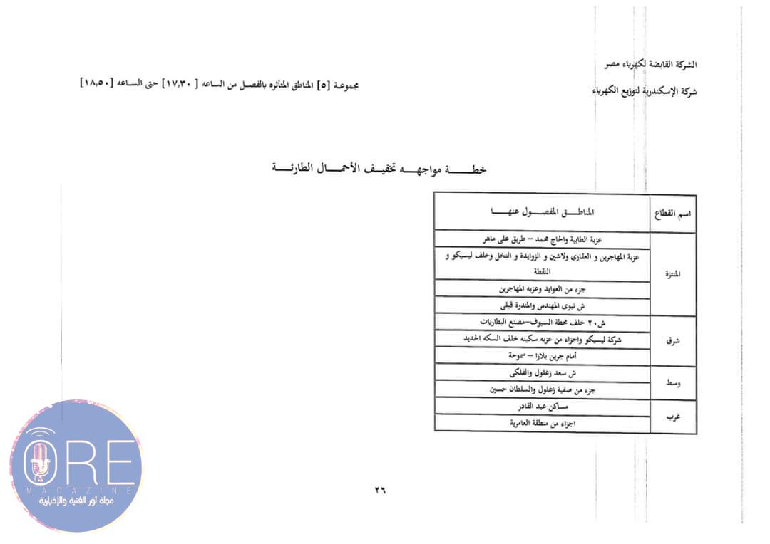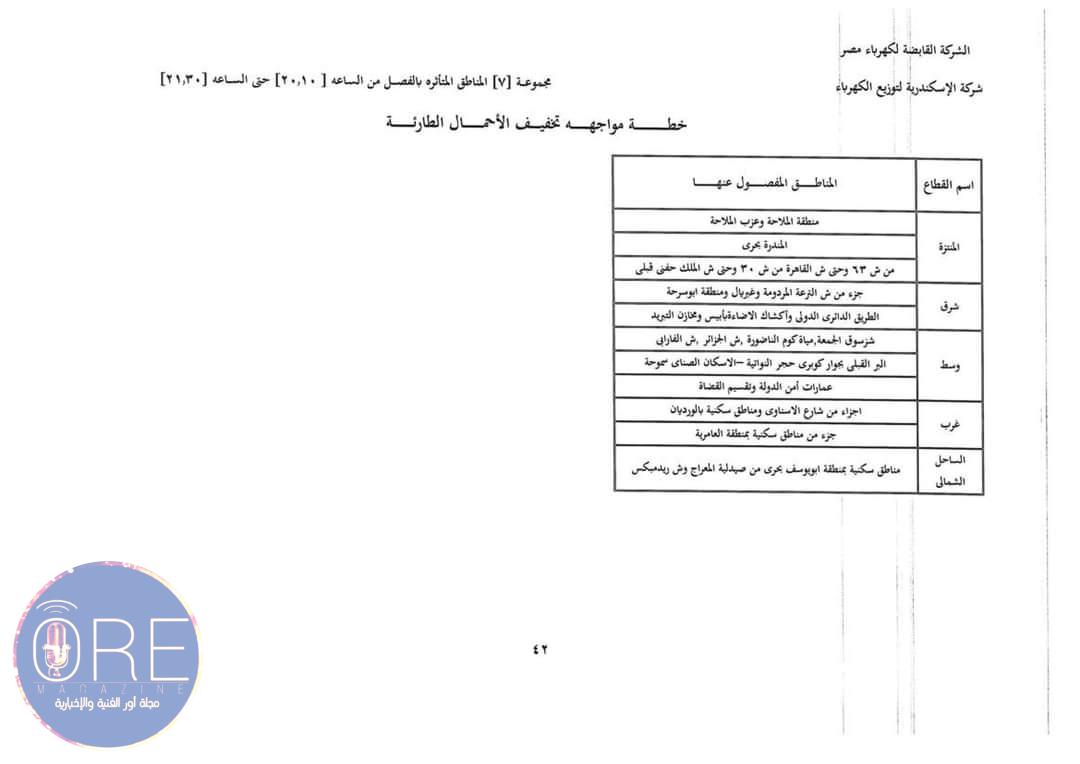 🔴 عاجل | – الإعلان عن خطة تخفيف الأحمال الكهرباء بمحافظة بالإسكندرية