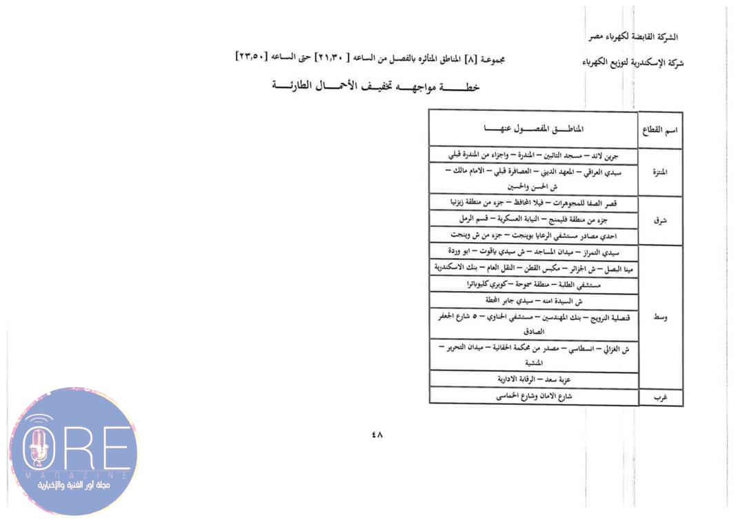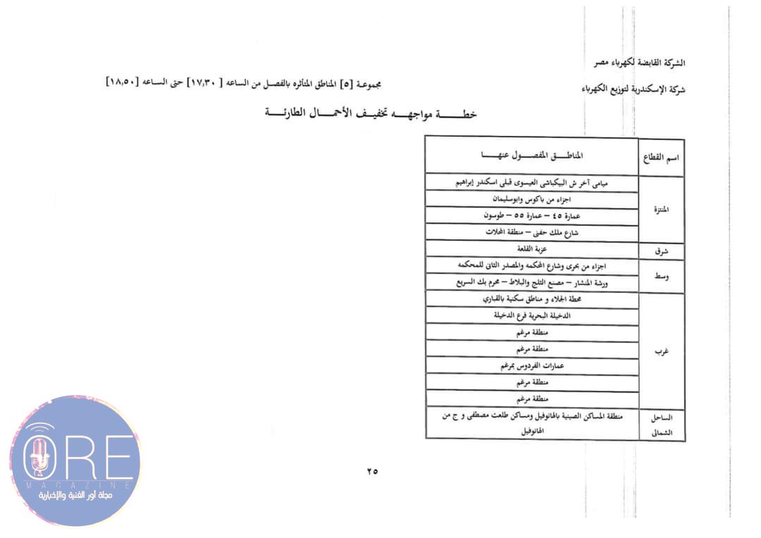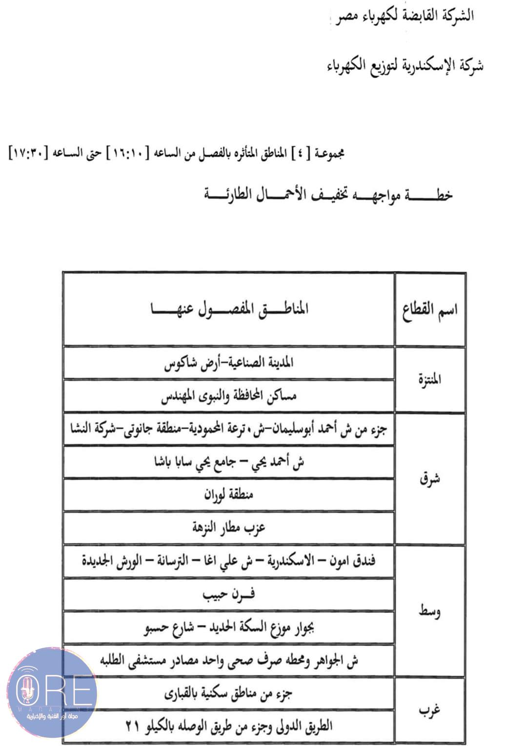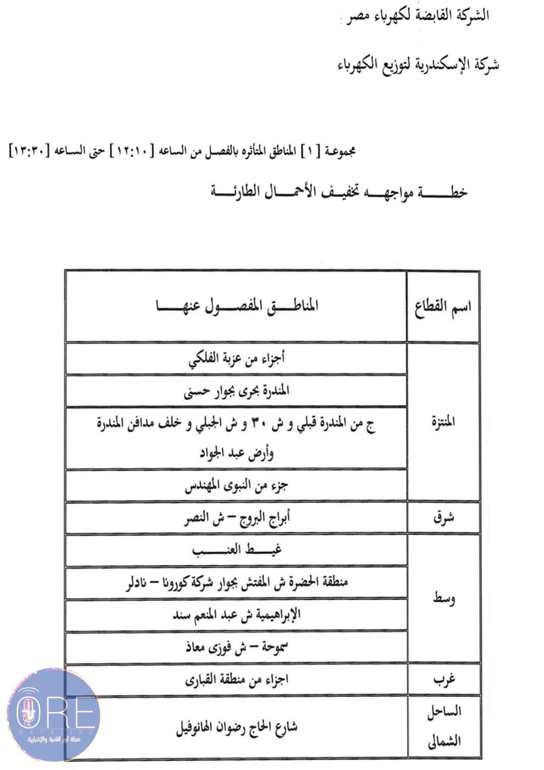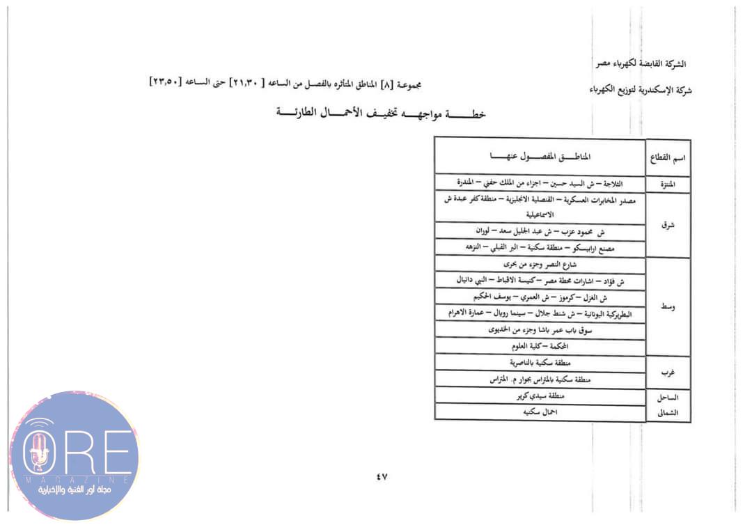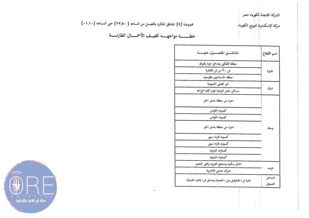 🔴 عاجل | – الإعلان عن خطة تخفيف الأحمال الكهرباء بمحافظة بالإسكندرية