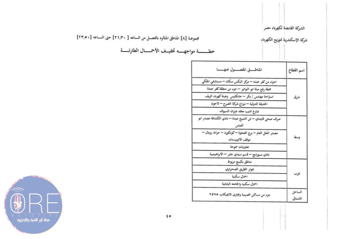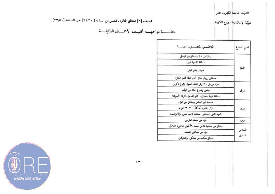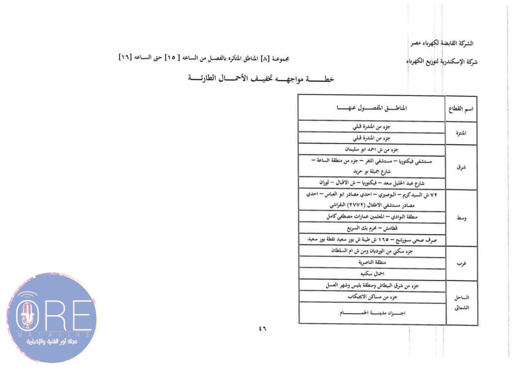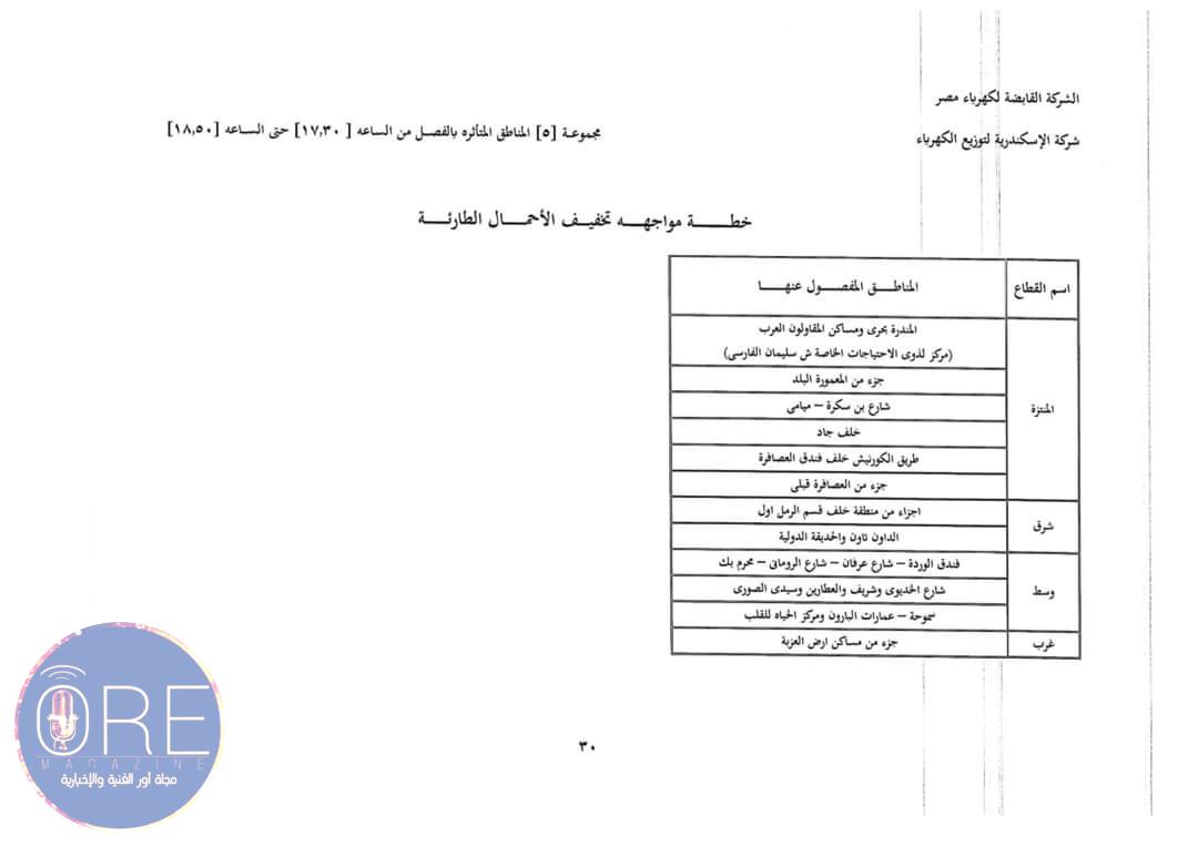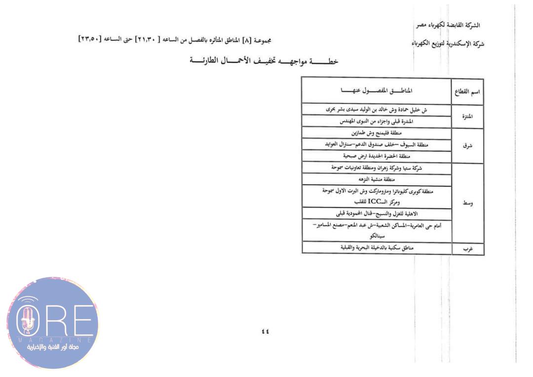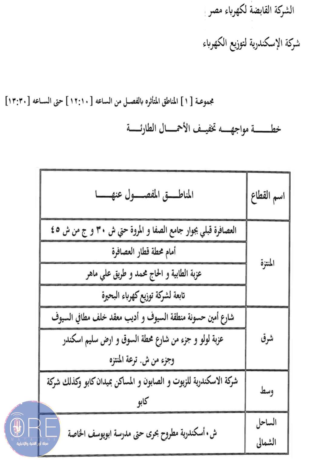 🔴 عاجل | – الإعلان عن خطة تخفيف الأحمال الكهرباء بمحافظة بالإسكندرية