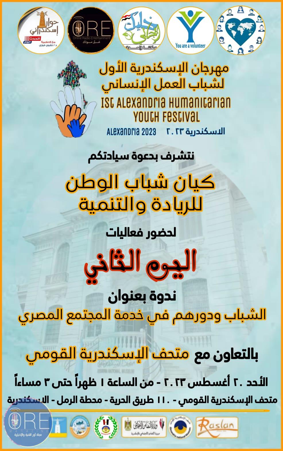 مشاركة كيان شباب الوطن للريادة والتنمية فاعليات اليوم الثاني لمهرجان الاسكندرية الاول لشباب العمل الانساني