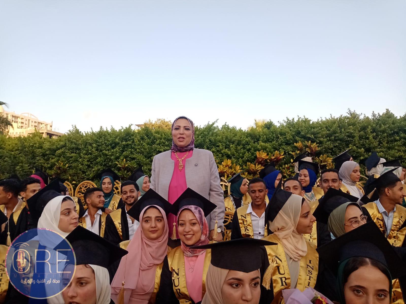 حيث رحبت بالضيوف وأهالي الطلاب الحضور وهنأت الطلاب وأهاليهم في يوم تخرج أبنائهم مؤكدة ان لولا وقوف اولياء الامور بجانب أبنائهم ماكانو وصلوا لهذا اليوم العظيم وايضا وصت الطلاب على الاهالي. وأشارت وأكدت ان لقب الخريجين الجديد هوه ملائكة الرحمة ومؤكدة عليهم المحافظة على هذا اللقب المشرف وممارسة عملهم بإتقان.
