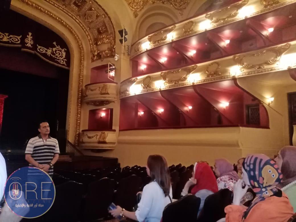 و تضمنت الزيارة التعرف على الاوبرا من خلال شرح مدير العلاقات العامه أ.هشام خفاجي حيث أشار الي ان دار أوبرا الإسكندرية “مسرح سيد درويش”، يُمثل تحفة معمارية ويُعد من أقدم المسارح فى مصر، تم وضع حجر الأساس له عام 1918، وأطلق عليه اسم “تياترو محمد علي” وصممه المهندس الفرنسي “جورج بارك”، مستوحيًا عناصر من “أوبرا فيينا”، ومسرح “أوديون” في باريس، وزين المبنى بمجموعة من الزخارف الفريدة ذات الطابع الكلاسيكي الأوروبي، وتم افتتاح المسرح عام 1921 وقدمت عليه عروض عديدة مصرية وأجنبية، وفي عام 1962 تم تغيير اسمه من “تياترو محمد علي” إلى “مسرح سيد درويش” تكريمًا لعبقري الموسيقى العربية ابن الإسكندرية الشهير، ومع مرور الزمن أُدرج بقائمة التراث المصري، وبدأت عام 2000 عمليات مكثفة لتجديده، وبعد عدة سنوات من العمل الدؤوب والماهر داخل المبنى من ترميم وزخرفة عالية الجودة، عاد المبنى لسابق عهده، وإلى رونقه وبهائه، وأدخلت الدولة عليه الإمكانات الفنية اللازمة لكي يصبح داراً للأوبرا المؤهلة لمنافسة دور الأوبرا العالمية .