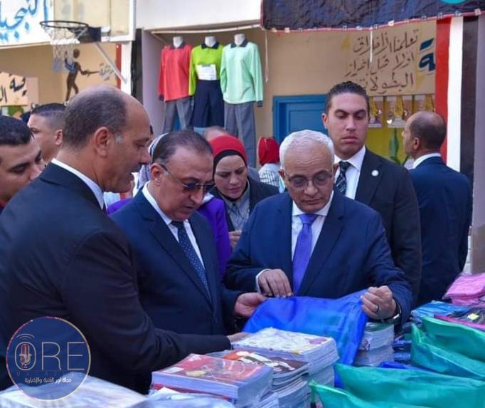 وتفقد الوزير والمحافظ أركان المعرض والذى يتضمن كافة الأدوات والمستلزمات المدرسية للطلاب في مراحل التعليم المختلفة، بالإضافة الزى المدرسى، والشنط المدرسية، والأدوات المكتبية من كشاكيل وكراسات وأقلام ومساطر وغيرها لخدمة الطلاب وأولياء الأمور بالمحافظة بسعر الجملة.