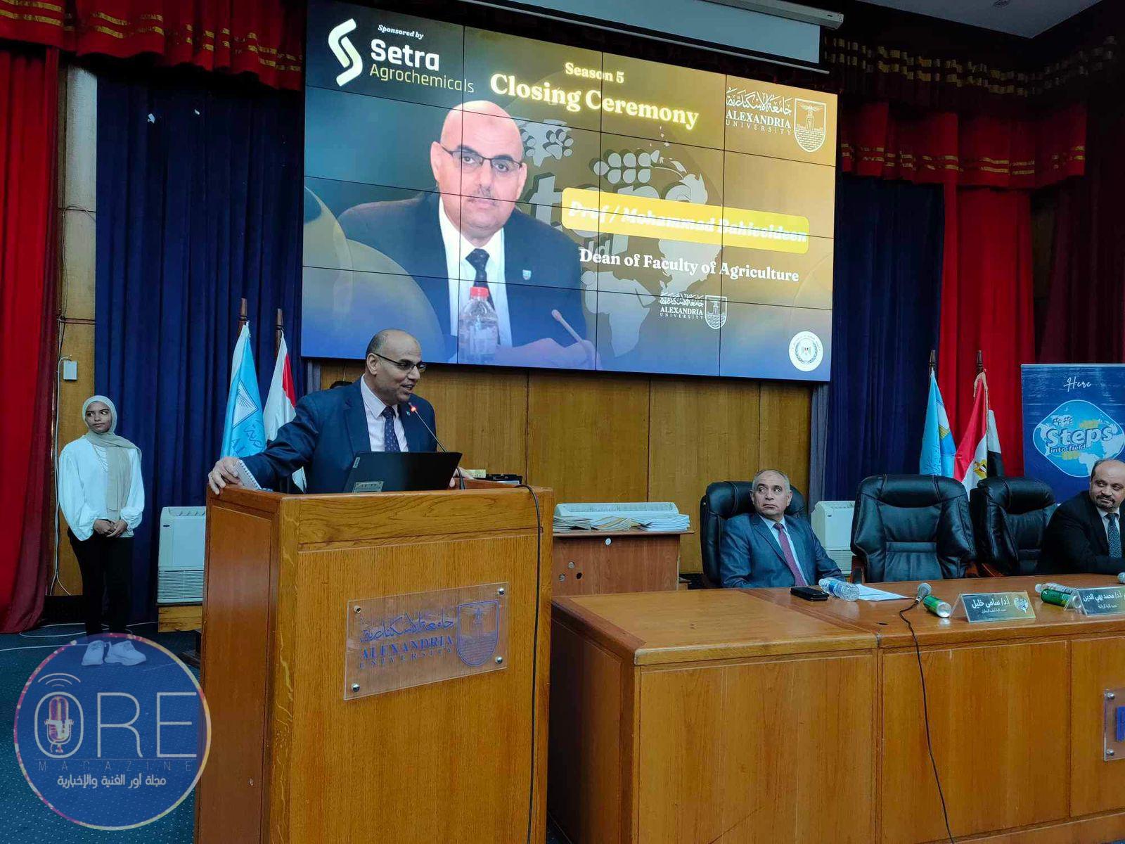 كما أثنى أ.د/ سامى خليل عميد كلية الطب البيطري على مشروع خطوات نحو مجال العمل فهو نتاج افكار الشباب بما يرونه متناسب مع متطلبات سوق العمل وان المشروع قد فتح أفاق لكثير من الطلاب لدخول مجالات العمل المختلفة مثل جودة وسلامة الغذاء وإنشاء المزراع الصغيرة والتسويق والإدارة وقد عبر أ.د/ محمد بهي الدين عن سعادته واعتزازه بالمشروع والطلاب القائمين عليه مؤكدا ان مشروع خطوات نحو مجال العمل هو الاول من نوعه في جامعة الإسكندرية تأسس عام ٢٠١٧ عن طريق الطلاب كما تحدث عن مؤشرات نجاح المشروع كونه استمر حتى موسمه الخامس كما تدرب من خلال المشروع في الغام الحالي ٢٠٠ طالب وهولاء الطلبة هم سفراء مصر في المستقبل ،كما ذكر منسقي المشروع الطالب مؤمن مكى مدير المشروع ان مشروع خطوات نحو مجال العمل قد حقق أهدافه على اكمل وجه واصبح من تدرب قادر على الدخول إلى سوق العمل وفى ختام الحفل تم تكريم كل من شارك في إنجاح المشروع من أساتذة وطلاب .
