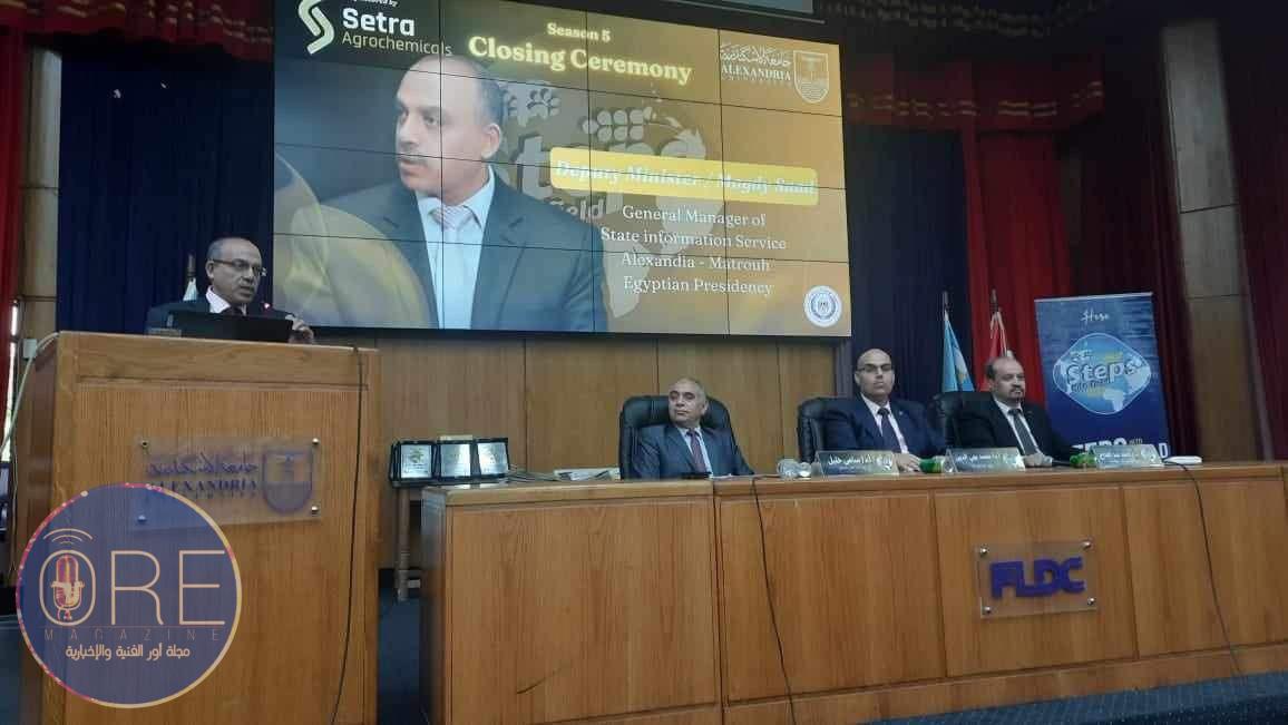 اختتم اليوم مشروع خطوات نحو مجال العمل لطلبة كلية الطب البيطري وزراعة الشاطبى وزراعة سابا باشا تحت رعاية أ.د عبدالعزيز قنصوة رئيس جامعة الإسكندرية و أ.د/ على عبدالمحسن نائب رئيس الجامعة لشئون التعليم والطلاب وبحضور كلا من أ.د محمد بهي الدين محمد عميد كلية الزراعة الشاطبى و أ.د أحمد عبدالفتاح عميد كلية زراعة- سابا باشا و أ.د سامى خليل عميد كلية الطب البيطري ومجدى سعد الغريب مدير عام ادارة اعلام الاسكندرية ومطروح التابعة للهيئة العامة للاستعلامات ود محمد محمود ممثل الشركة الراعية للمشروع ووكلاء الكليات الثلاث وبعض الاساتذة المشاركين فى البرنامج وطلبه المشروع وبدأ الحفل بتلاوة القرآن الكريم والسلام الوطنى ثم اوضح مجدى الغريب اهمية الدعم الاعلامى لهذه النماذج المشرفة والمشرقة من شباب جامعة الإسكندرية وتسليط الضوء على هذة الافكار الرائعة لتقديمها كنموذج يحتذى به الشباب لتنمية مهاراتهم ومعرفة احتياجات سوق العمل وجعلهم قادرين على تحمل المسئولية ، وأكد أ.د/ أحمد عبدالفتاح أن الشباب هم قوة مصر الناعمة التي من خلالها تتقدم الأمه وقد استفاد من المشروع خلال الخمس مواسم له 1500 طالب وخريج من الكليات الثلاث وأن هذا المشروع هو جزء من استراتيجية مصر لللتنمية المستدامة 2030 ،